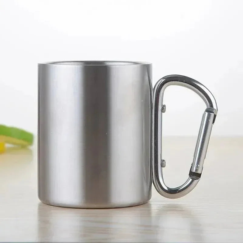 Stainless Steel Camping Travel Cup with Carabiner Hook Handle - Picnic Water Mug for Outdoor Travel Hike - Trekker Essentials Stainless Steel Camping Travel Cup with Carabiner Hook Handle - Picnic Water Mug for Outdoor Travel Hike - Trekker Essentials