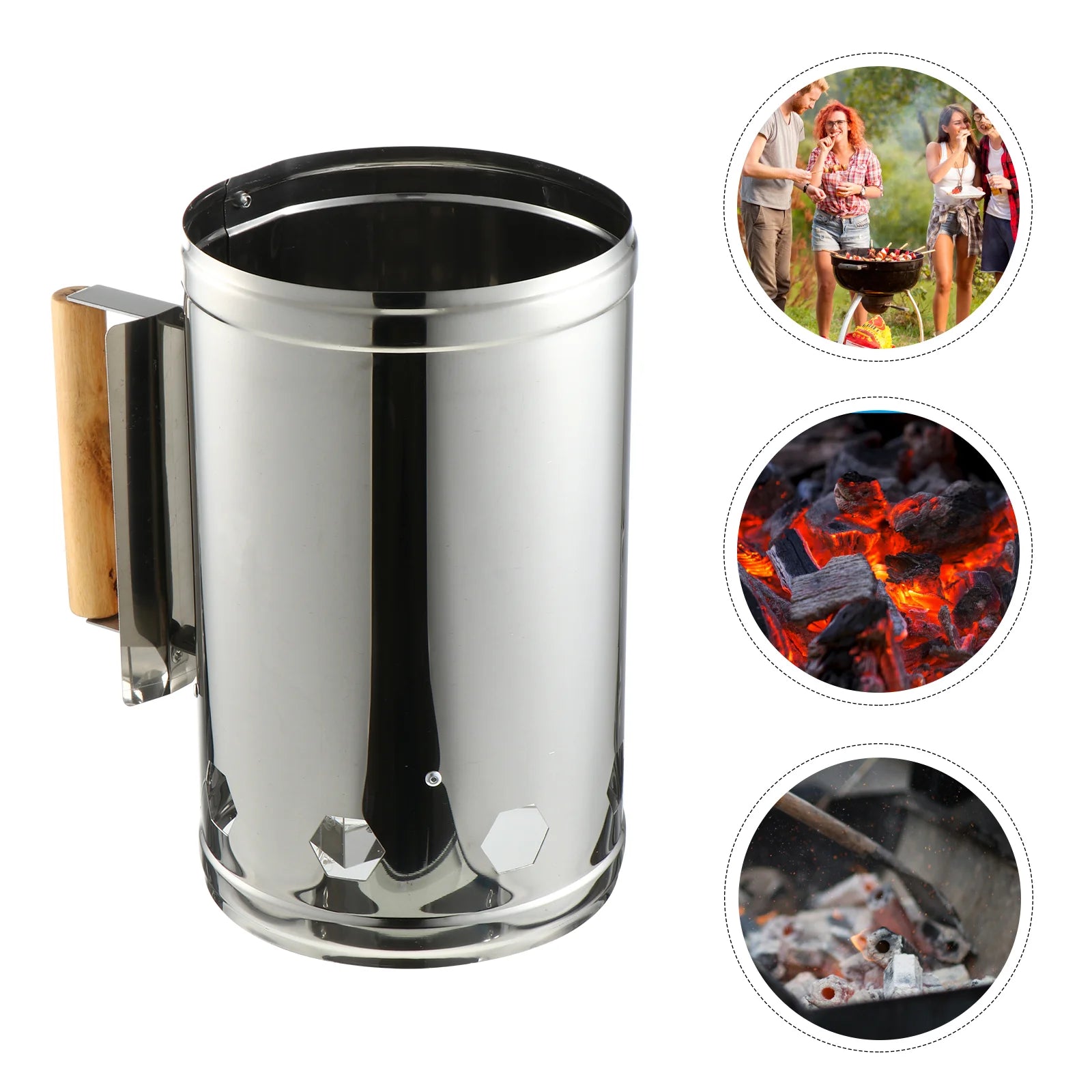 Starter Charcoal Chimney Fire BBQ Grill Tool - Outdoor Smoker Burner Ignition - Steel Stainless Camping Coal Lighter