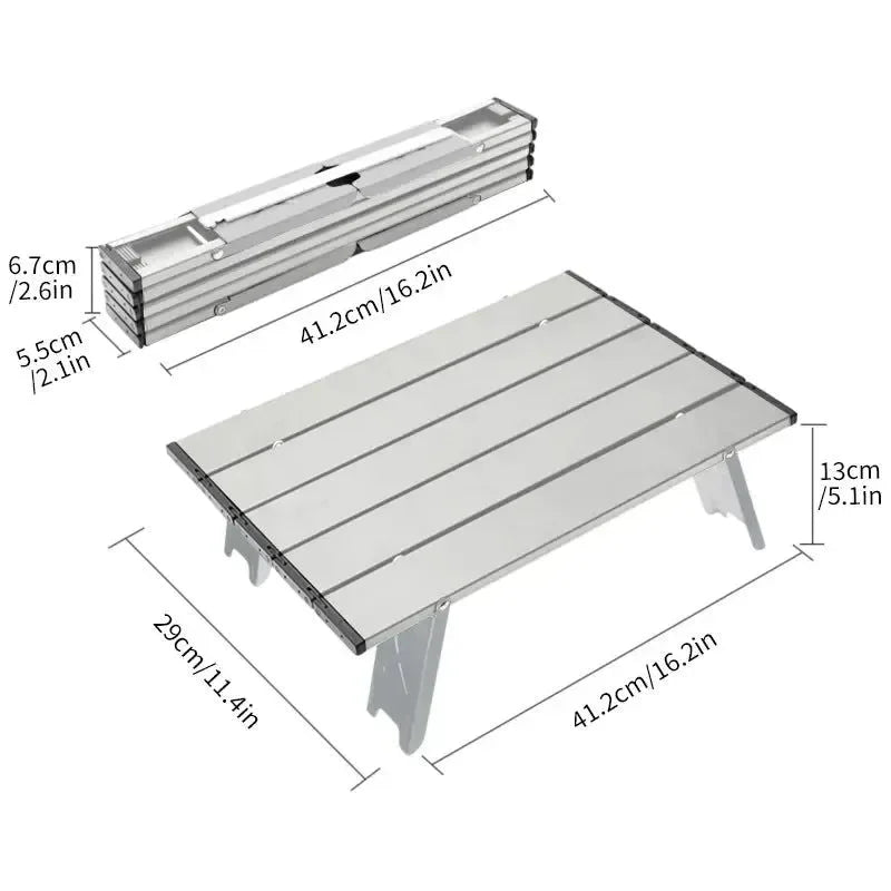 Crafted from durable aluminum alloy, this mini table is ultralight and portable, making it easy to carry on your outdoor adventures. Its roll-up design allows for compact storage and quick setup, perfect for on-the-go use.